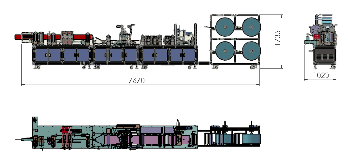 此设备为仙桃市超远自动化设备有限公司的全自动KN95立体折叠口罩机生产线,整个生产环节从原材料进料焊接成型、鼻线进料焊接、耳带焊接、废料收卷至成品收集实现全自动化,适用于各类KN95/3D折叠类防护口罩的生产.